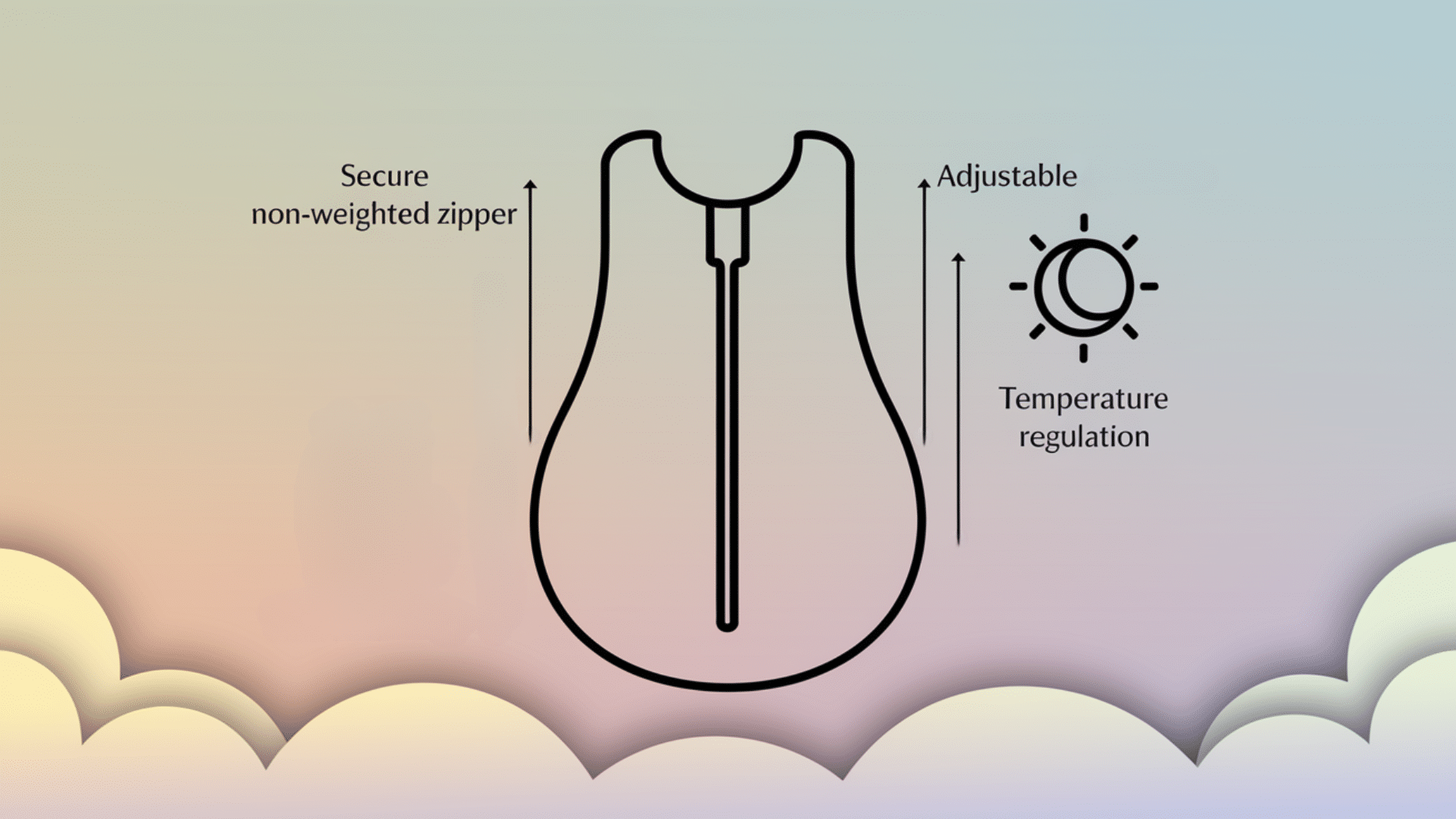 Picture this: Your baby snug as a bug, arms free to stretch, but their body warmly wrapped in a soft cocoon that can’t ride up over their face like a loose blanket could.