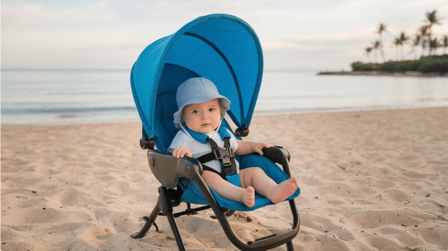 Portable baby beach chairs give your little one a safe, sand-free spot to sit during outdoor adventures. These lightweight chairs typically include sun canopies for shade and cupholders for drinks or small toys.