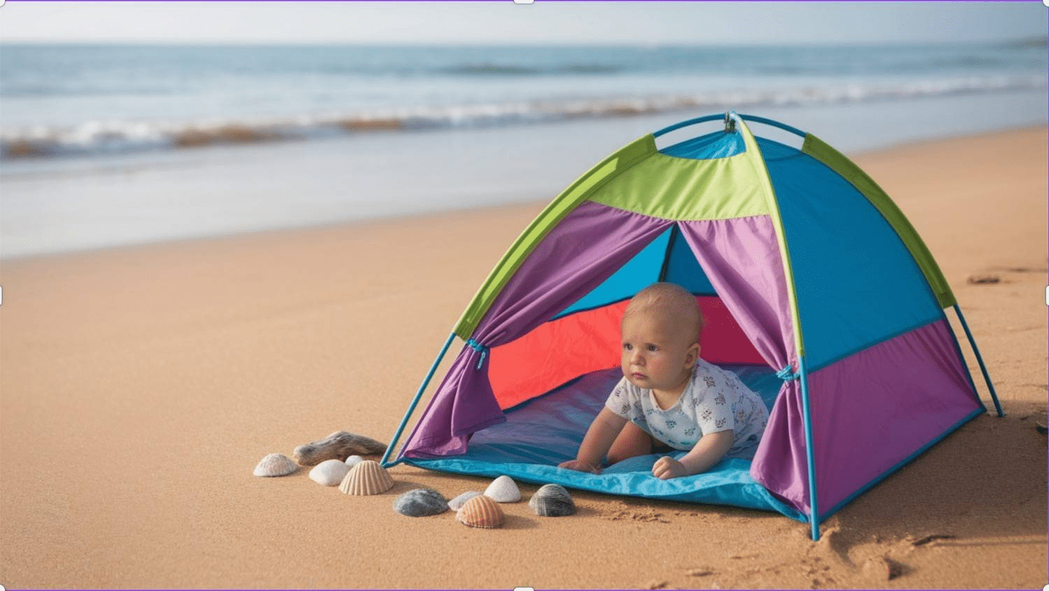 Find one with UPF 50+ fabric, good airflow, and easy setup. Many have a floor to keep the baby off hot sand and stakes to hold it down on windy days.