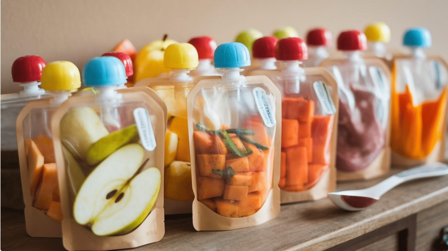 Look for pouches with simple ingredients, no added sugar, and caps that babies can’t remove and swallow. Some reusable pouches let you fill them with homemade purees for budget-friendly options.