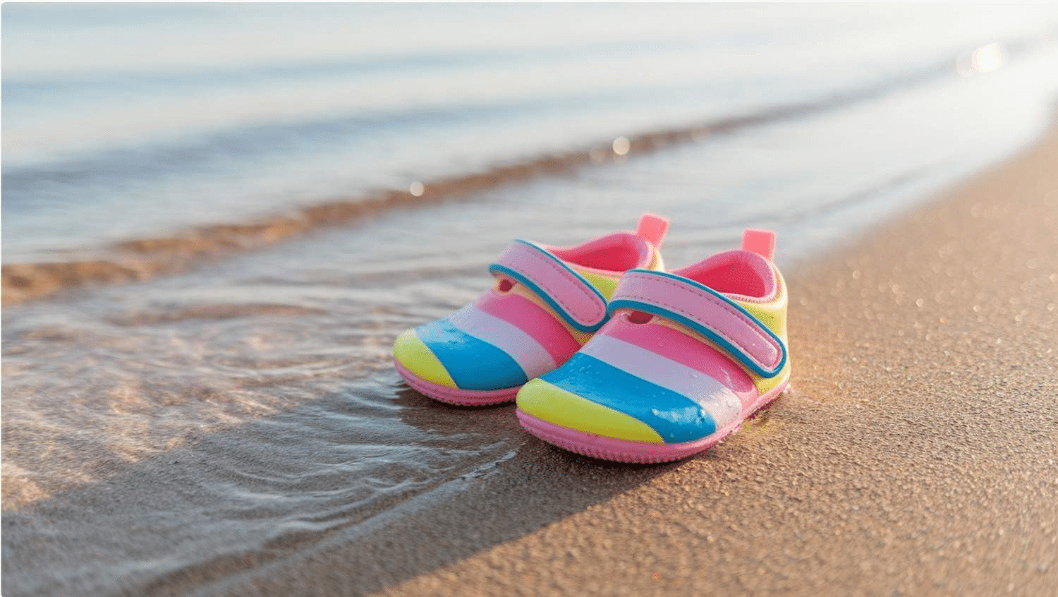 Look for styles with covered toes to avoid stubbed toes during water play. Choose shoes with easy-on designs, adjustable closures, and breathable materials that won’t trap water when your baby leaves the pool or beach.