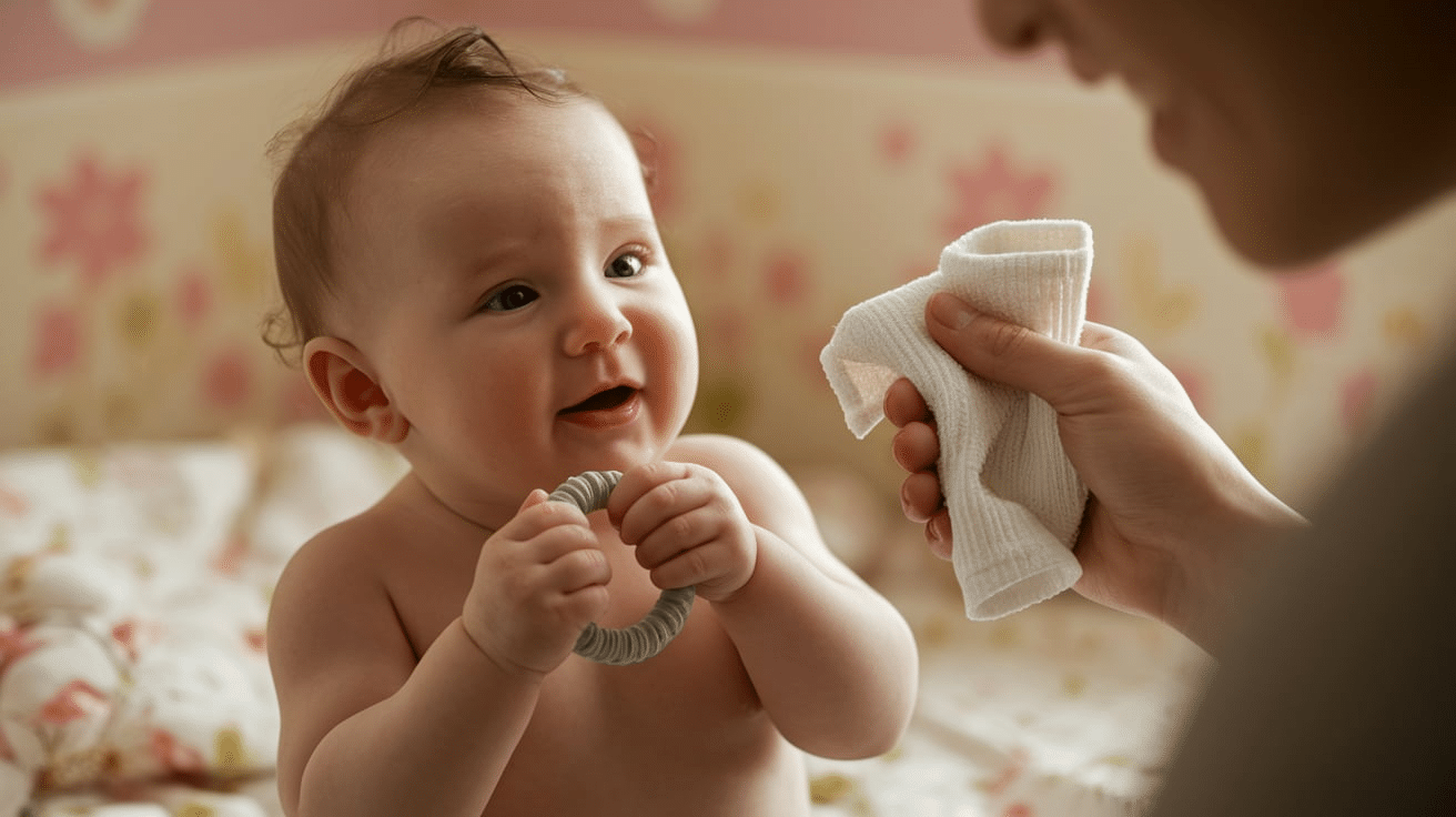 Teething can be challenging for both babies and parents. Offer chilled (not frozen) teething toys or a clean, damp washcloth for your baby to munch on.