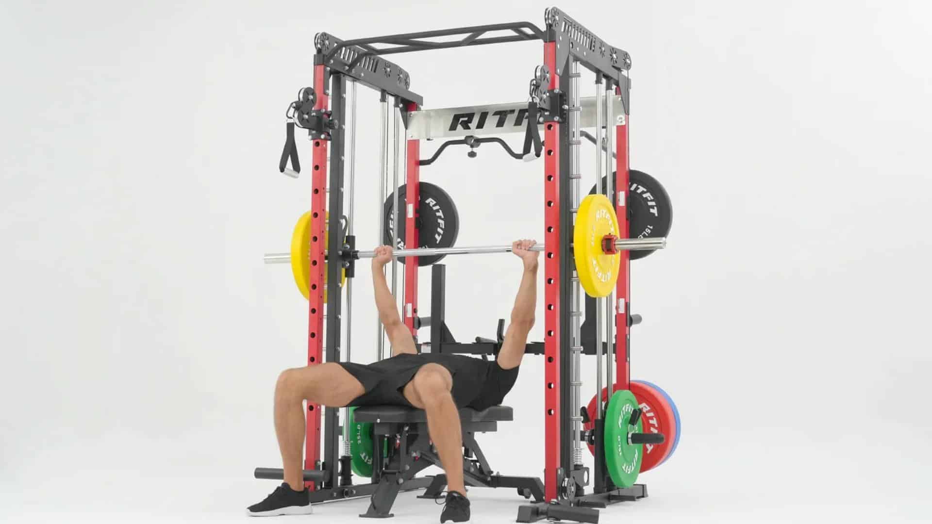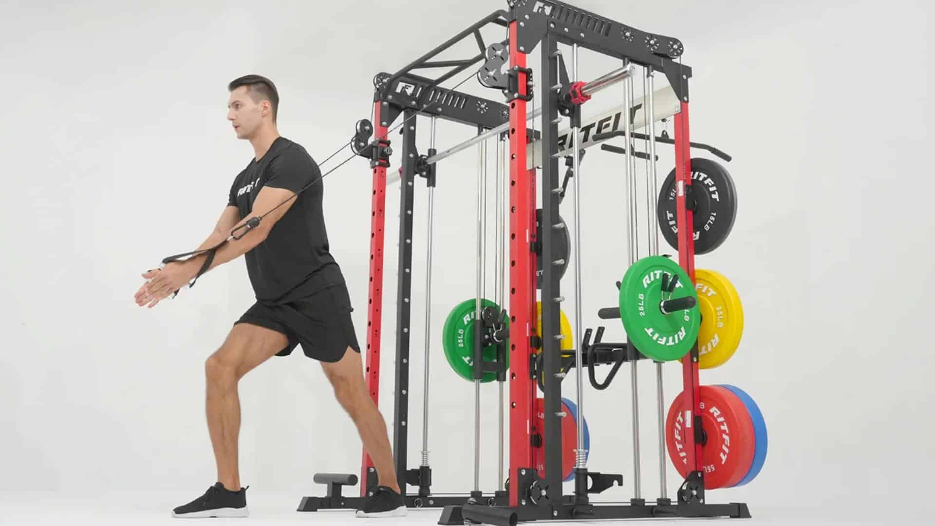 The RitFit M1 Pro is a multi-functional home gym powerhouse that combines a Smith machine, power rack, and cable crossover system into one sleek, space-efficient unit.