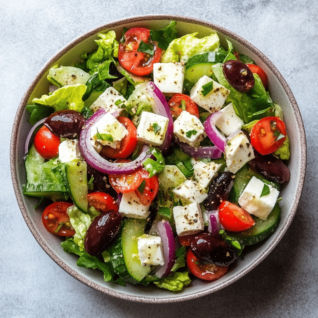 - Flavor Profile: Fresh and tangy with a mix of vegetables, olives, and feta cheese.