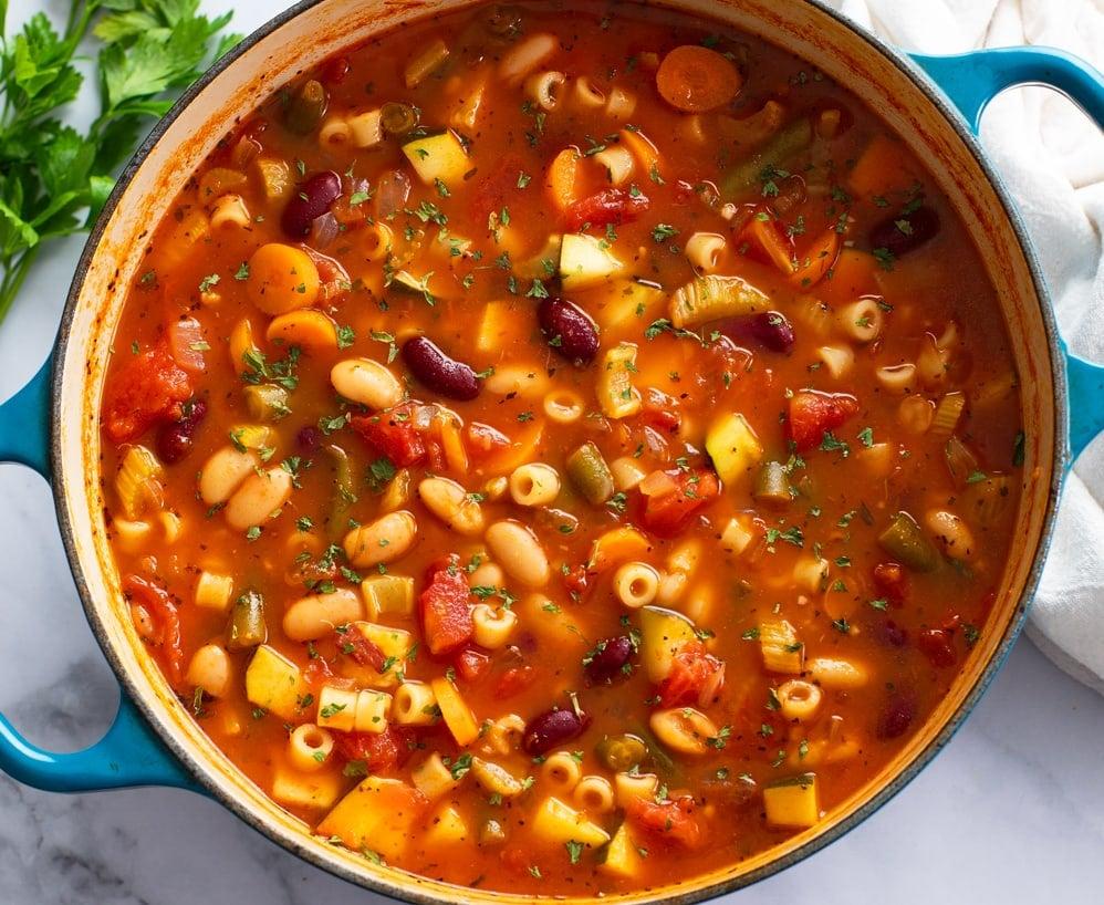 - Preparation or Recipe: Cook a mix of vegetables, beans, pasta, and broth with herbs. Simmer until tender and serve hot.