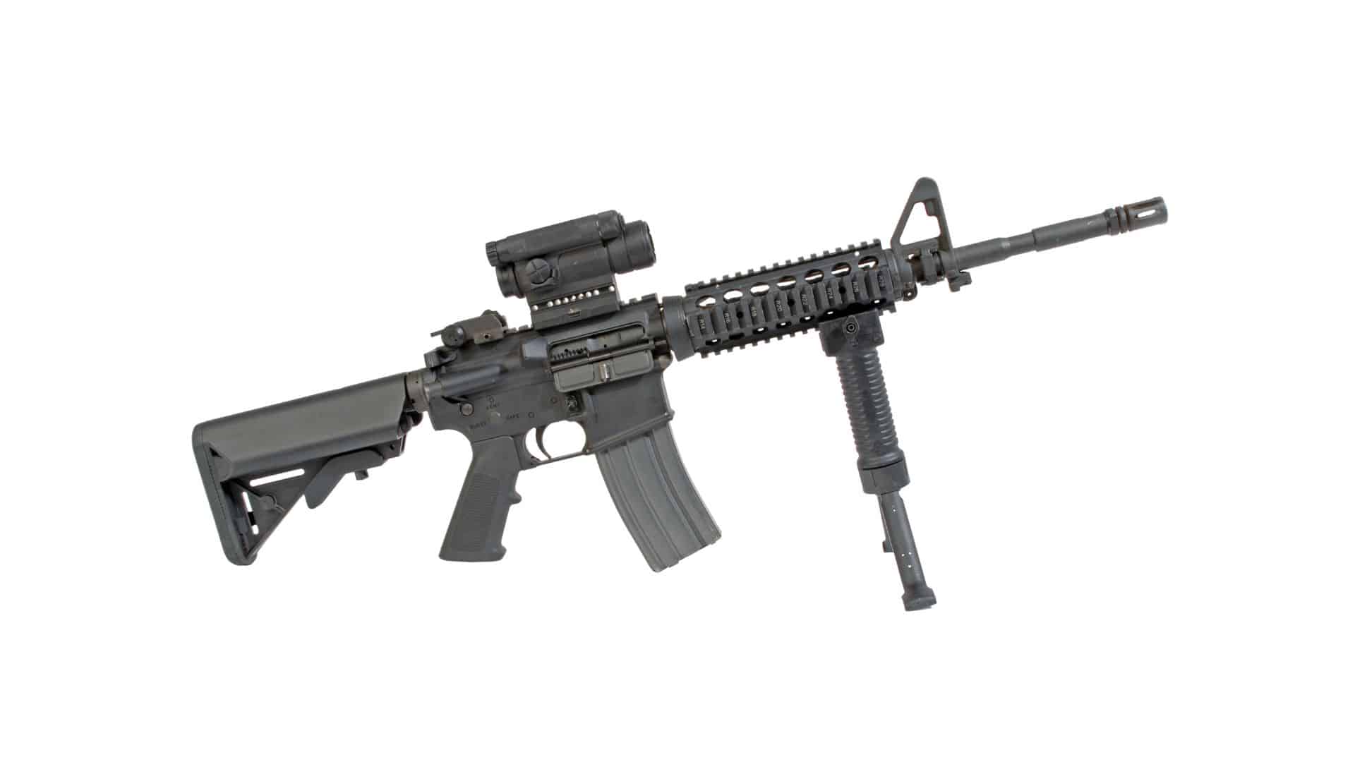 An assault rifle is a selective-fire rifle that uses intermediate cartridges and a detachable magazine.