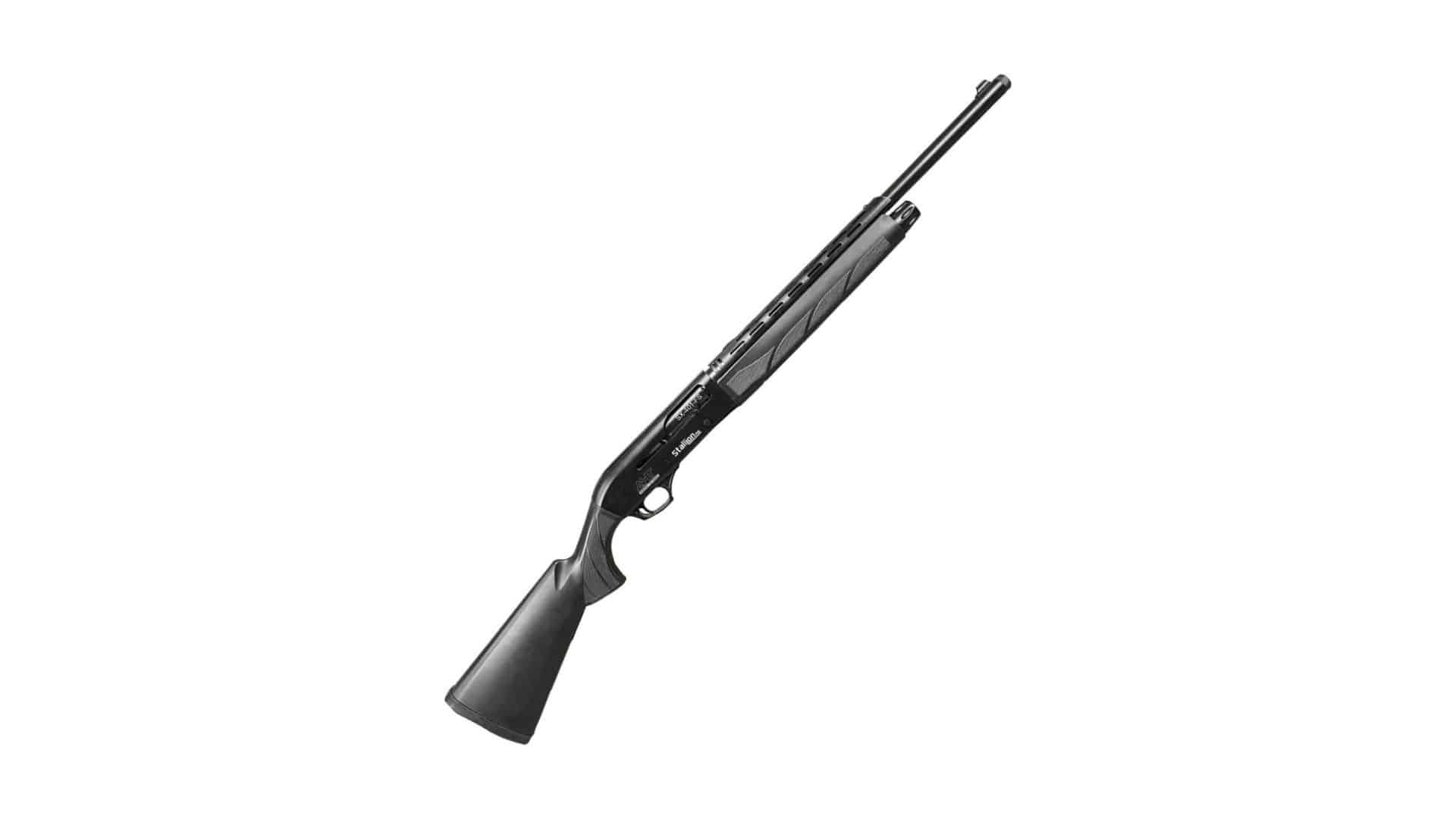 A semi-automatic shotgun uses gas or recoil operation to cycle the action and load the next shell, allowing for rapid successive shots.