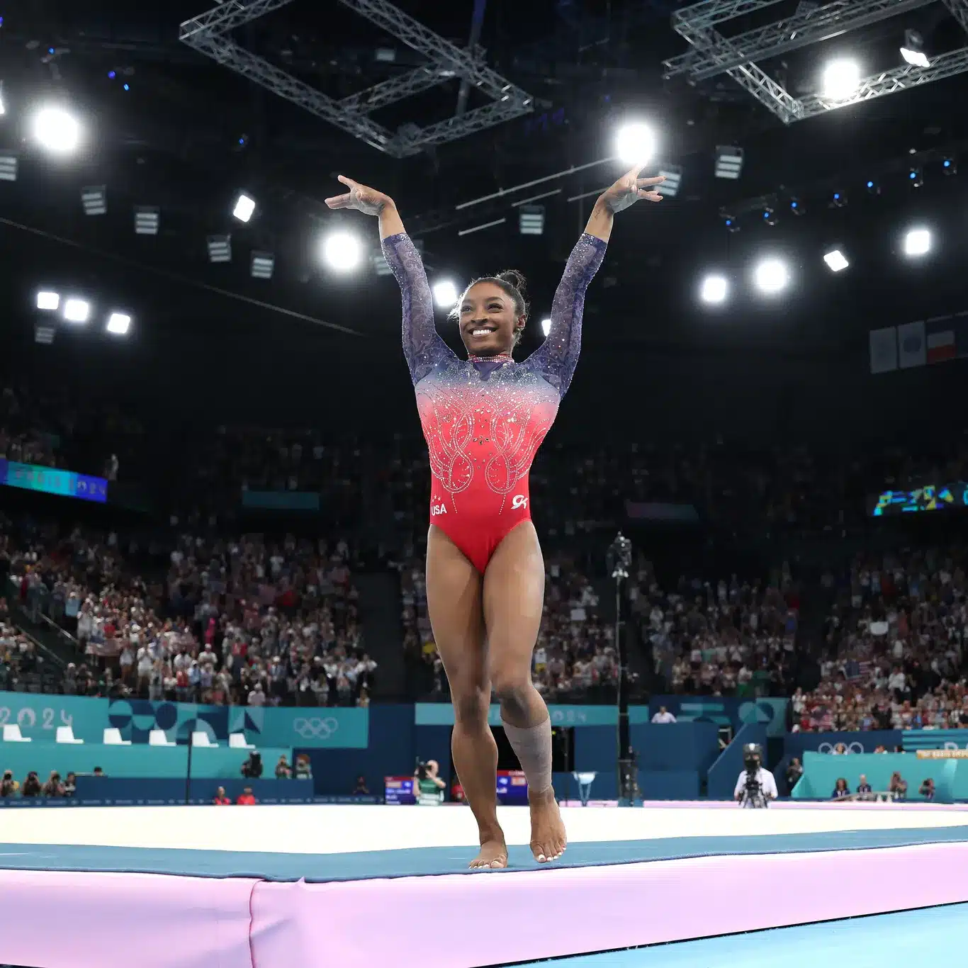 Gymnasts execute flips, twists, and other aerial maneuvers, often reaching impressive heights.