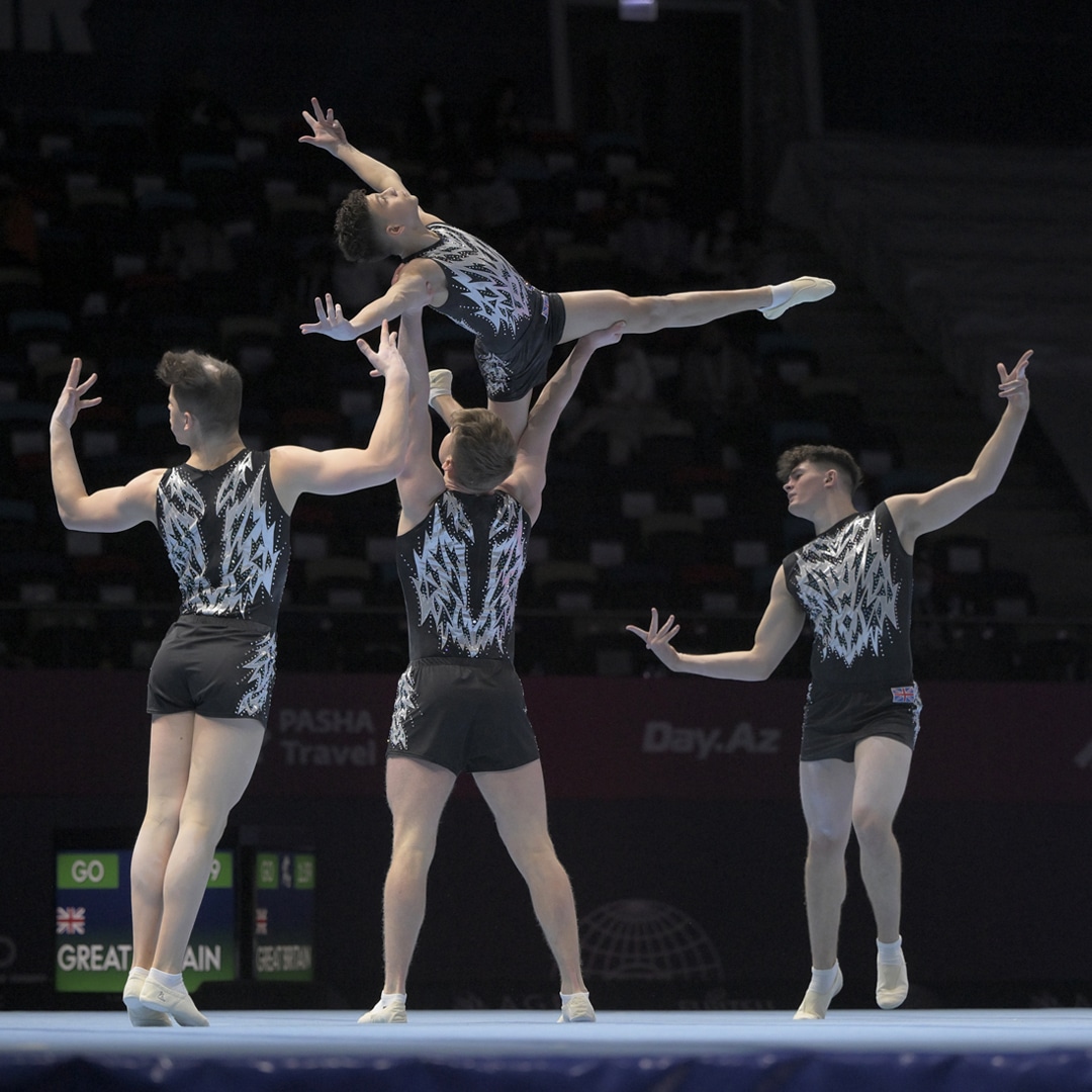 Aerobic Gymnastics is a high-energy discipline in which gymnasts perform continuous and complex movements to fast-paced music.