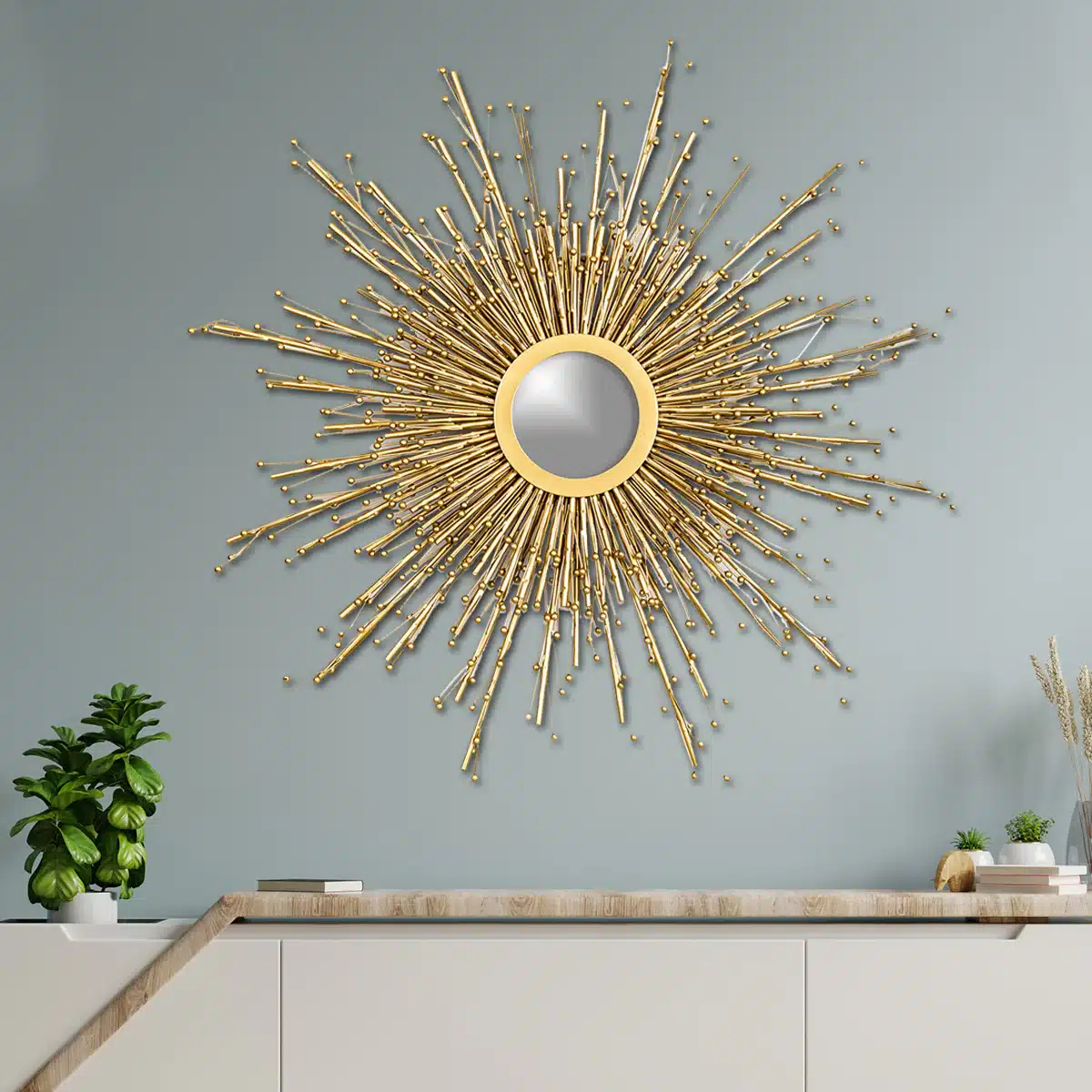 Sunburst mirrors are decorative mirrors with a central mirror surrounded by rays or spikes resembling the sun.
