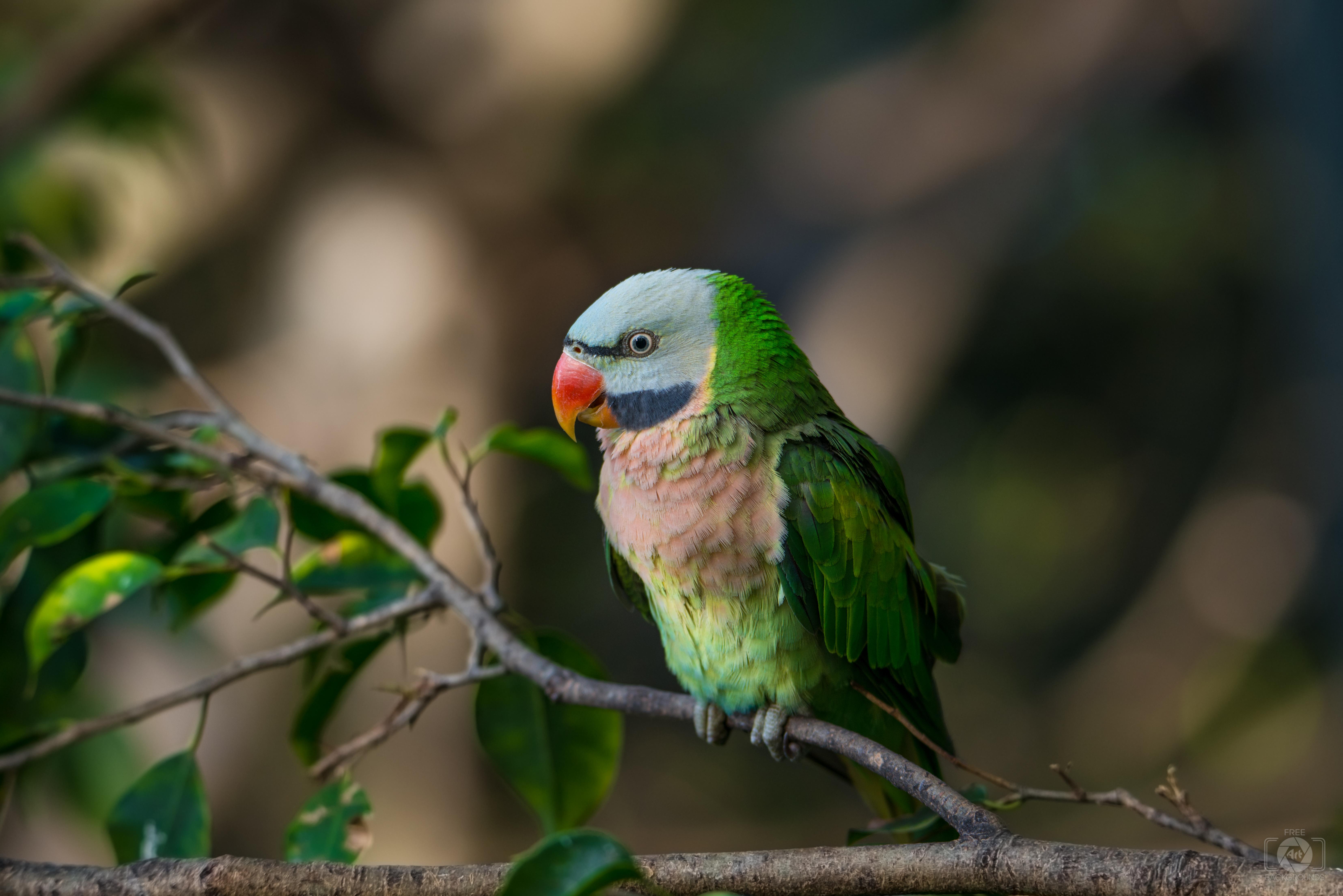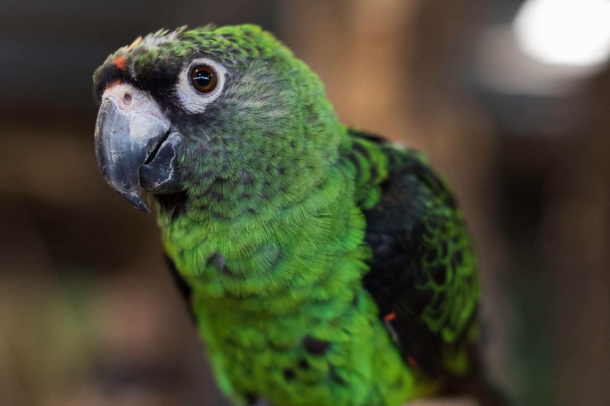 Moustached Parakeets are medium-sized parrots known for their distinctive “moustache” markings around their beaks.
