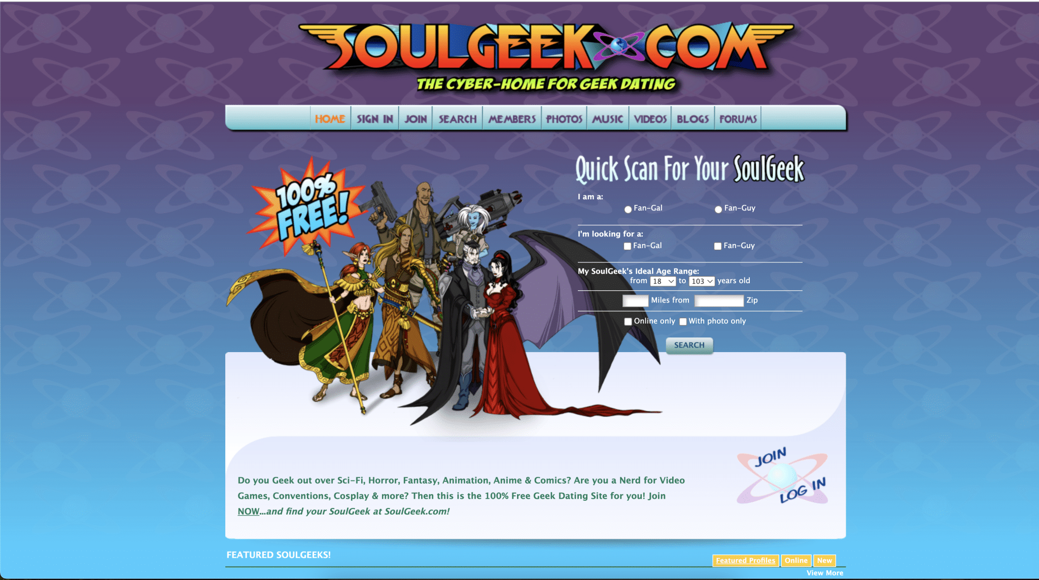 SoulGeek is a dating site for the geek community, focusing on sci-fi, fantasy, anime, and gaming enthusiasts.