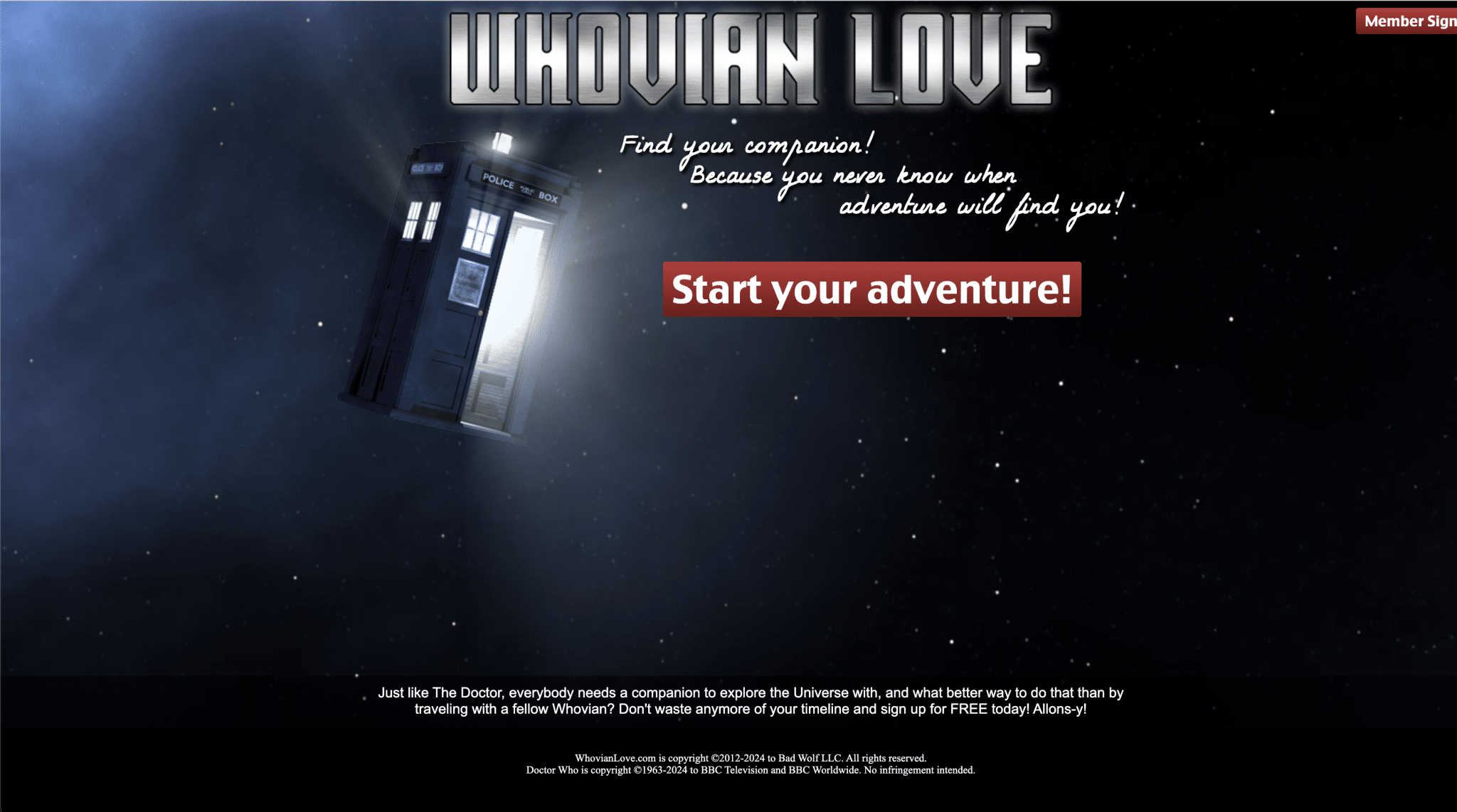 Whovian Love is a dating platform for fans of Doctor Who, offering a space where Whovians can meet, chat, and connect.