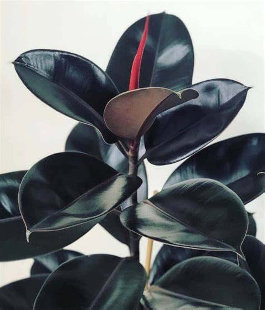 The Burgundy Rubber Plant is prized for its dark, almost black leaves that have a subtle reddish hue.