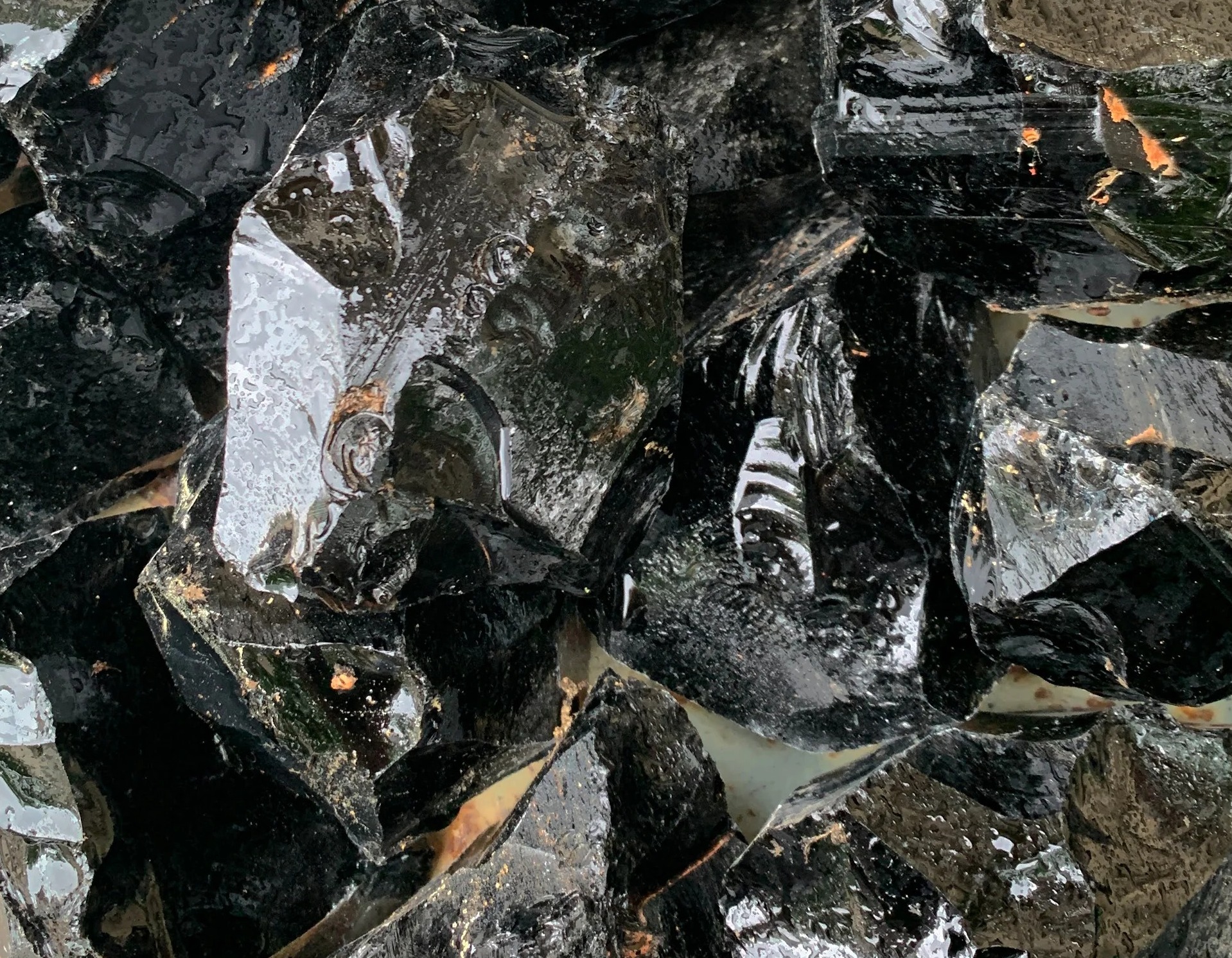 • Obsidian is a volcanic glass formed by the rapid cooling of lava. This process gives it a smooth, shiny surface and a uniform black color.
