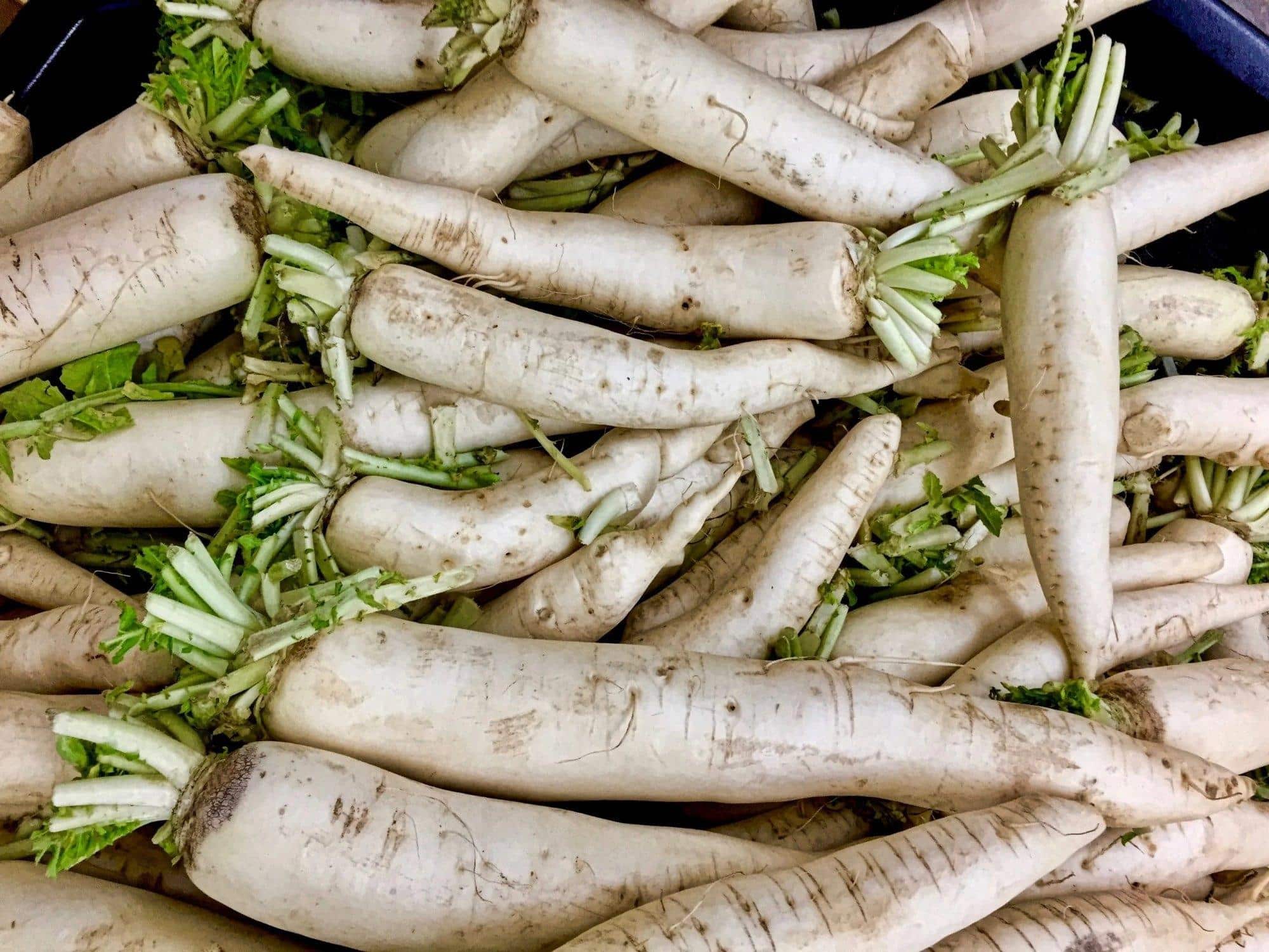 In Japan, white radish is the most consumed vegetable. Some varieties can grow over 2 feet long and weigh several pounds