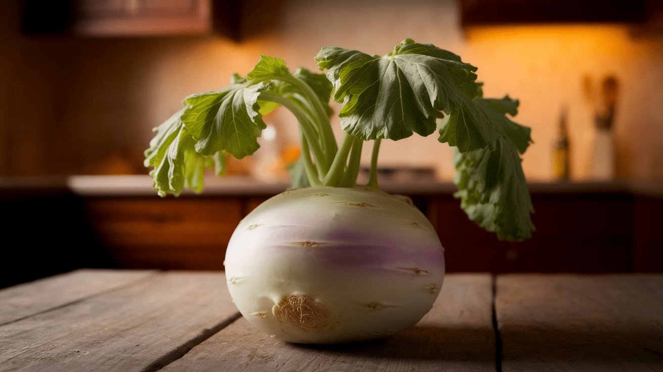 Kohlrabi, often described as a mix between cabbage and turnip, has a crisp texture and a mild, slightly peppery flavor. Both its bulbous root and leafy green top are edible, making it a versatile addition to many dishes.